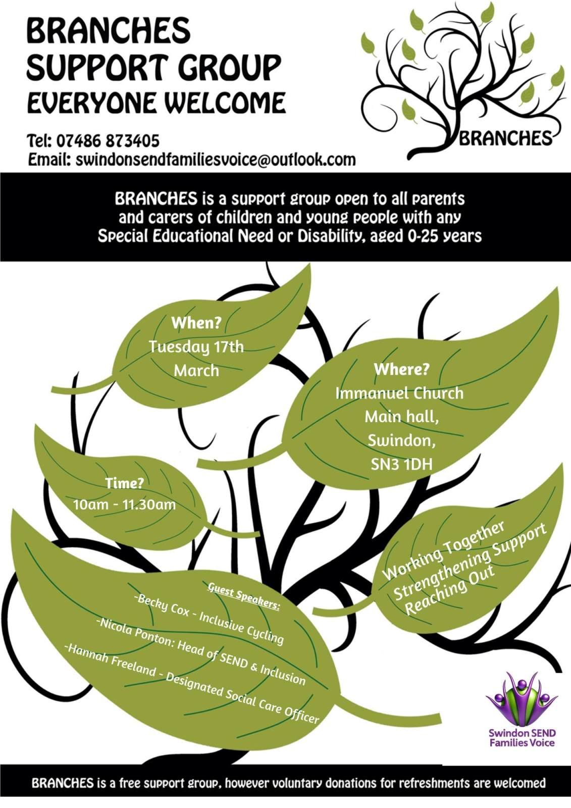 Branches Support Group - Everyone Welcome - Tuesday 17th March