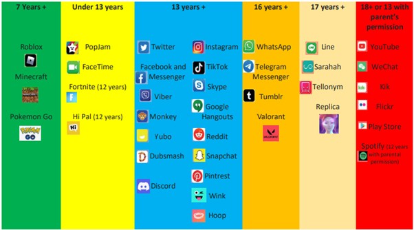 Many children are on platforms that are not suitable for their age range. These are the following age ratings for some social platforms: